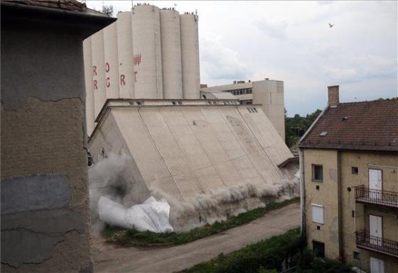 Felrobbantják az egykori István malom évtizedek óta használaton kívüli üzemépületét Miskolcon. A robbantást követően az épület az oldalára dőlt.